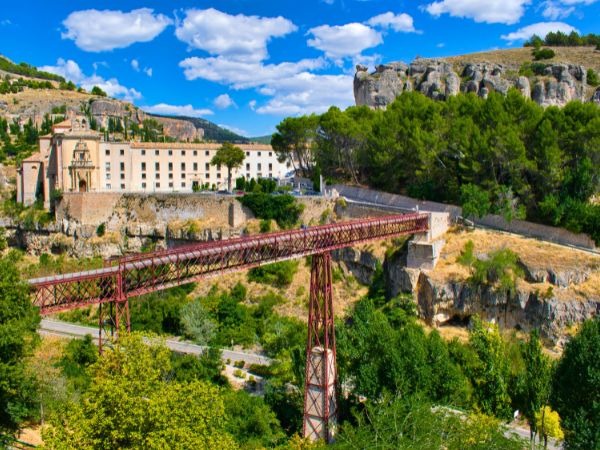 San Pablo Bridge is one of the most memorable spots in Cuenca. This iron and wooden footbridge crosses the Huécar gorge and offers stunning views of the Hanging Houses and the surrounding cliffs. Standing on the bridge, you can see the river far below and the dramatic rock formations that define the town’s landscape.
