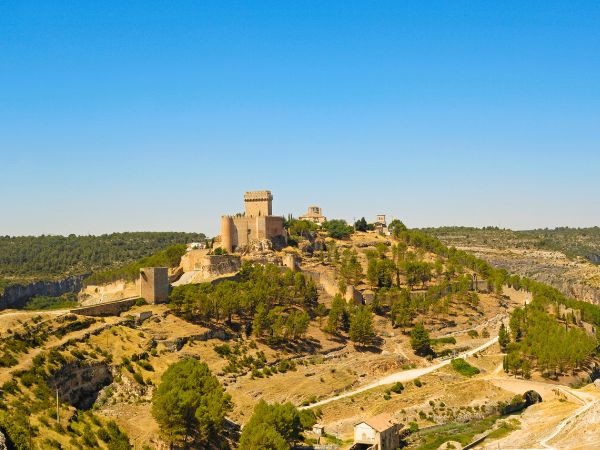 Your first stop can be the La Mancha windmills near Consuegra. Take time to walk among the windmills, take photos, and enjoy the wide views. From there, continue to the fortified town of Belmonte to explore the castle and the surrounding streets. Next, head to Alarcón for a relaxed lunch and, if you wish, a stay at the Parador, where history and comfort combine.